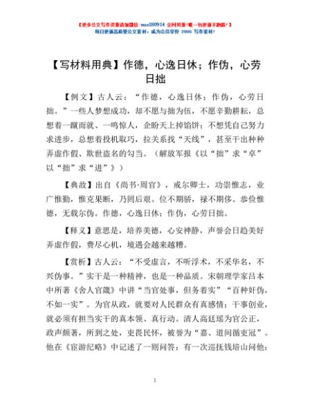/ 【写材料用典】作德,心逸日休;作伪,心劳日拙