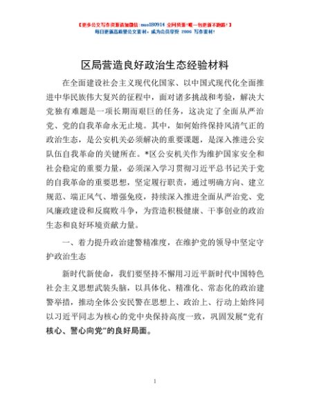 / 区局营造良好政治生态经验材料