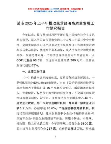 / 某市2025年上半年推动民营经济高质量发展工作情况报告