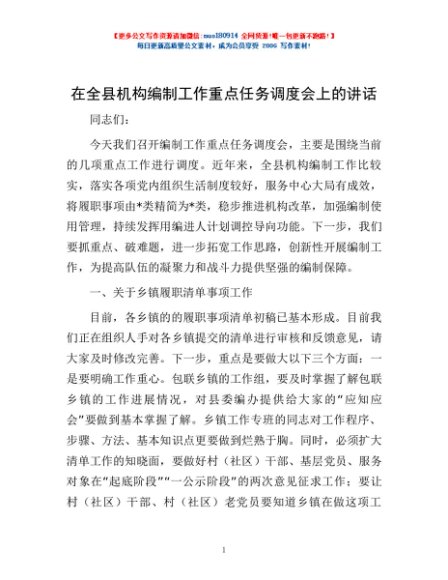 / 在全县机构编制工作重点任务调度会上的讲话