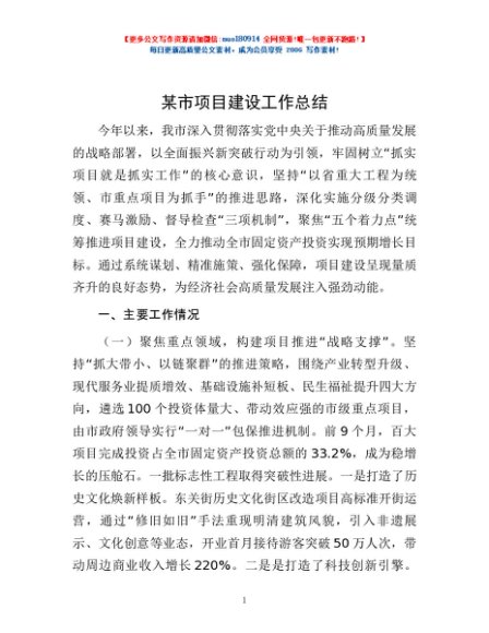 / 某市项目建设工作总结