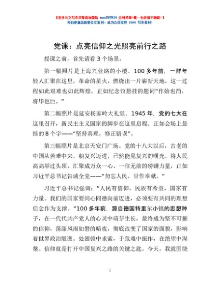 / 党课:点亮信仰之光 照亮前行之路