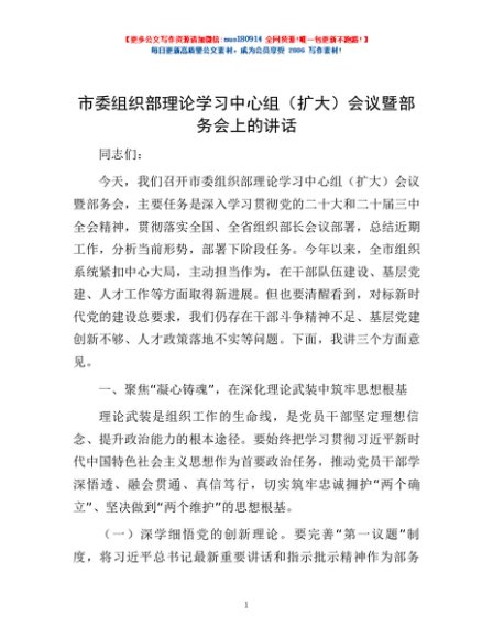 / 市委组织部理论学习中心组(扩大)会议暨部务会上的讲话