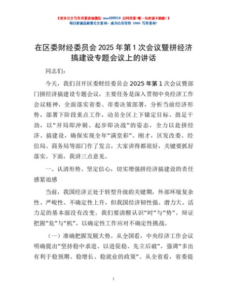 / 在区委财经委员会2025年第1次会议暨拼经济搞建设专题会议上的讲话