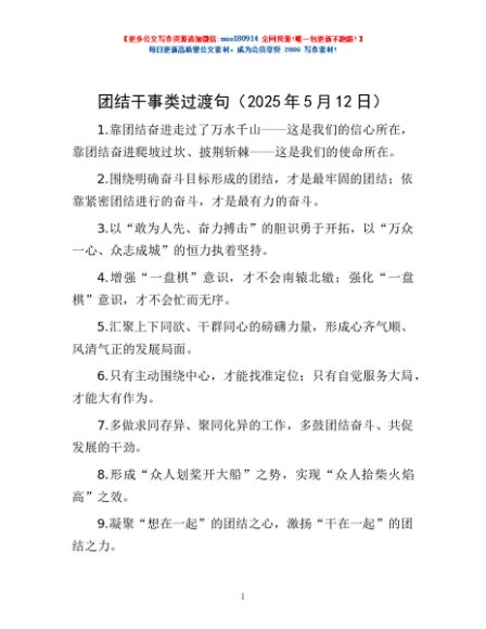 / 团结干事类过渡句(2025年5月12日)