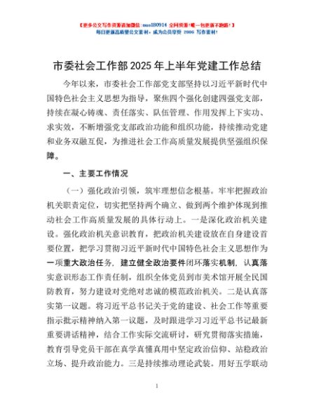 / 市委社会工作部2025年上半年党建工作总结