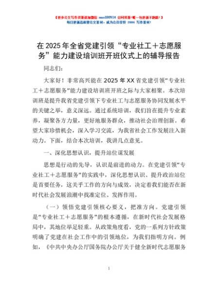 / 在2025年全省党建引领“专业社工+志愿服务”能力建设培训班开班仪式上的辅导报告