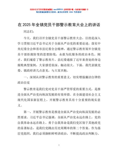 / 在2025年全镇党员干部警示教育大会上的讲话