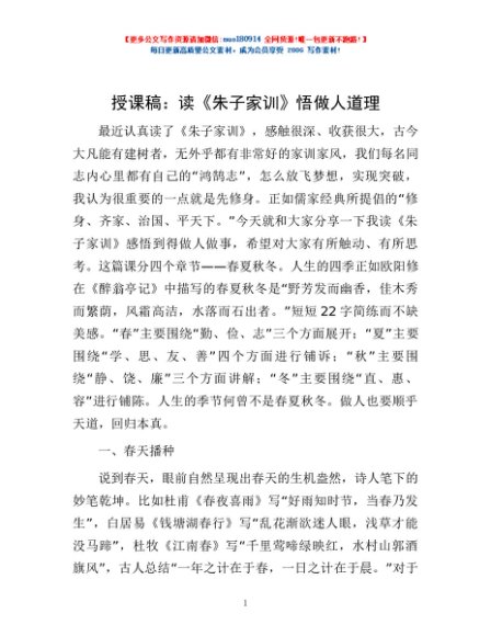 授课稿:读《朱子家训》 悟做人道理