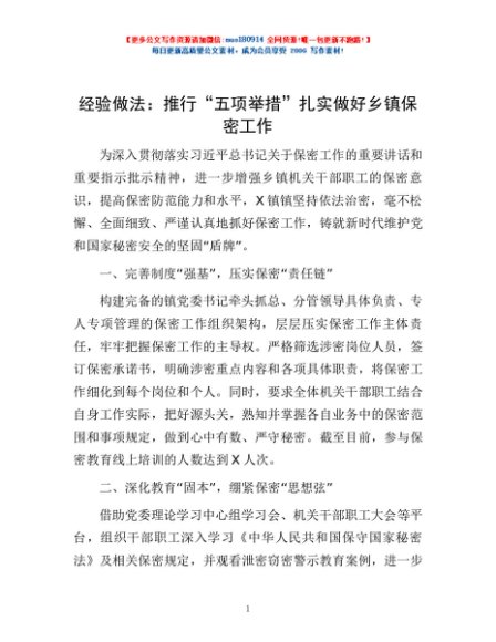 / 经验做法:推行“五项举措”扎实做好乡镇保密工作