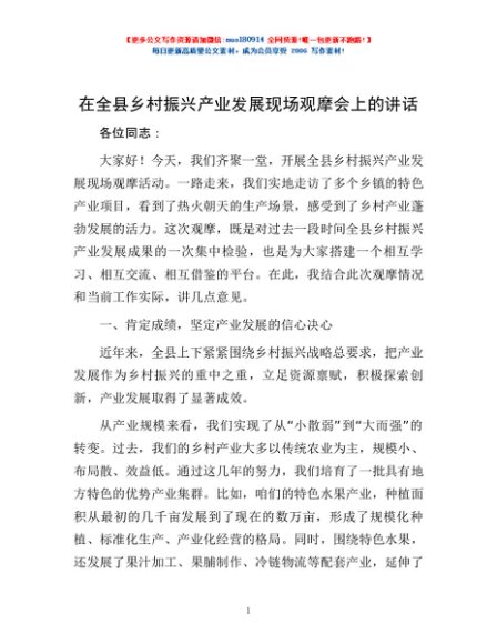 / 在全县乡村振兴产业发展现场观摩会上的讲话