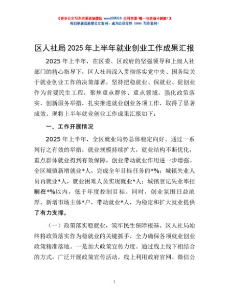/ 区人社局2025年上半年就业创业工作成果汇报