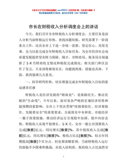 / 市长在财税收入分析调度会上的讲话