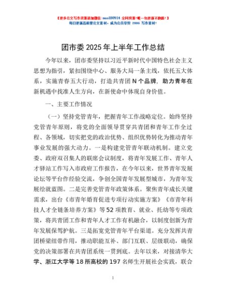 / 团市委2025年上半年工作总结
