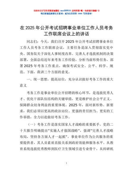 / 在2025年公开考试招聘事业单位工作人员考务工作联席会议上的讲话