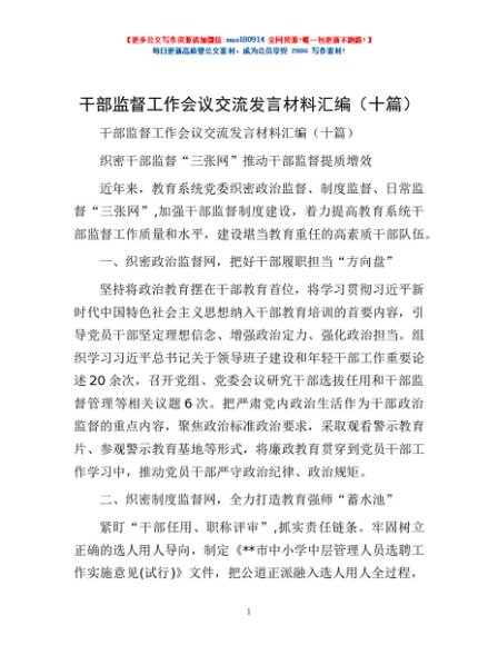 / 干部监督工作会议交流发言材料汇编(十篇)