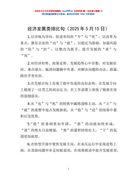 / 经济发展类排比句(2025年5月15日)