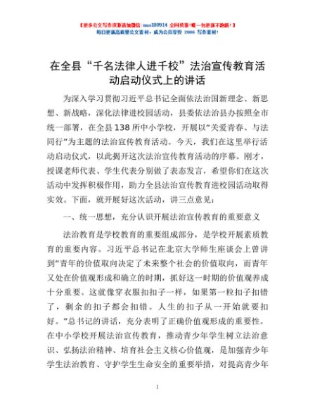 / 在全县“千名法律人进千校”法治宣传教育活动启动仪式上的讲话