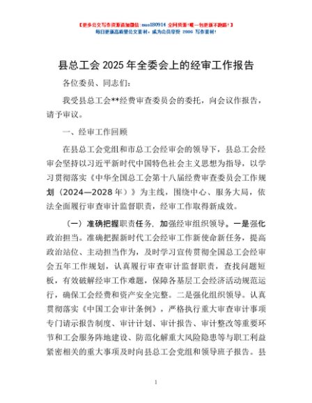 / 县总工会2025年全委会上的经审工作报告