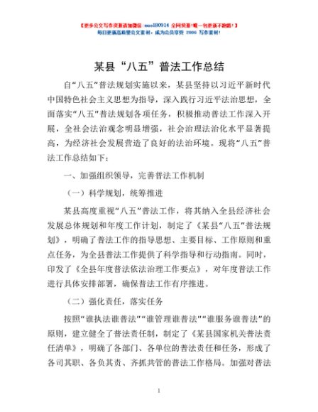 / 某县“八五”普法工作总结