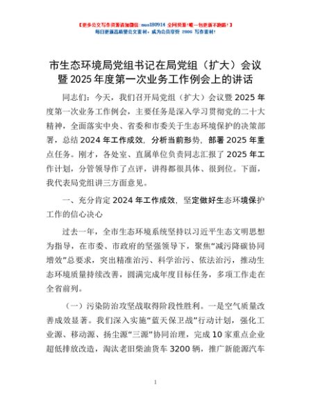 / 市生态环境局党组书记在局党组(扩大)会议暨2025年度第一次业务工作例会上的讲话