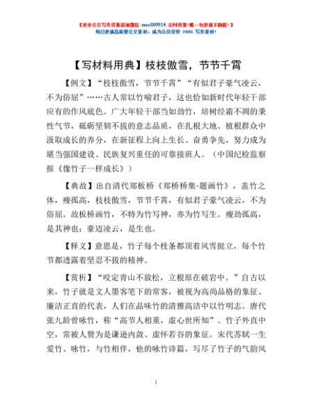 【写材料用典】枝枝傲雪,节节千霄