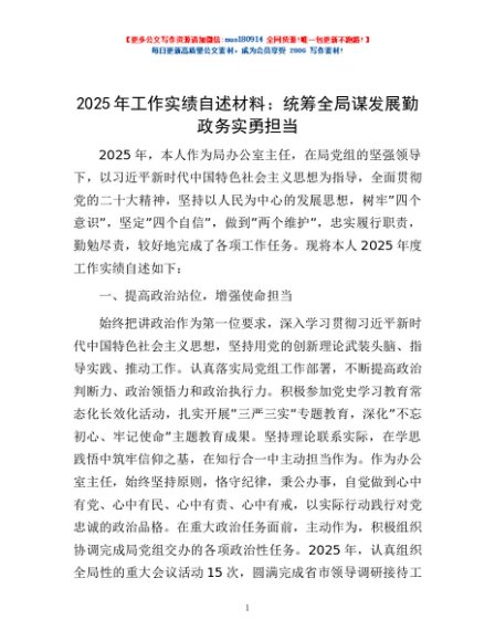 / 2025年工作实绩自述材料:统筹全局谋发展勤政务实勇担当