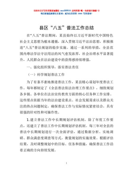 / 县区“八五”普法工作总结