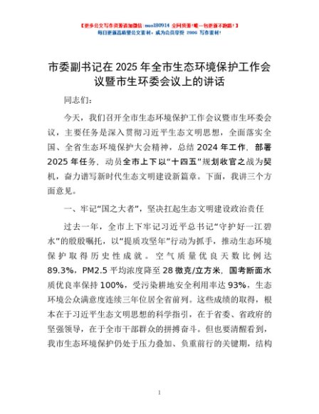 / 市委副书记在2025年全市生态环境保护工作会议暨市生环委会议上的讲话