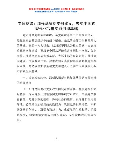专题党课:加强基层党支部建设,夯实中国式现代化我市实践组织基础