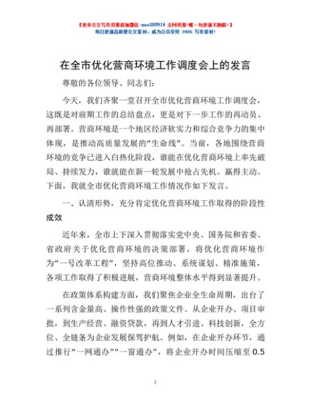 / 在全市优化营商环境工作调度会上的发言