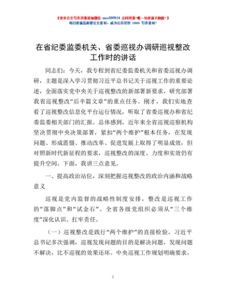 / 在省纪委监委机关、省委巡视办调研巡视整改工作时的讲话