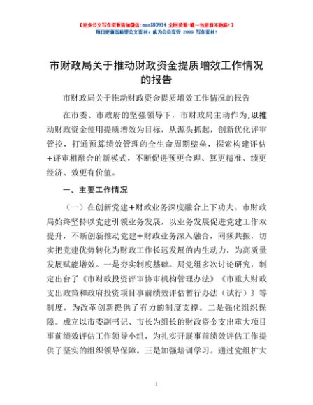 / 市财政局关于推动财政资金提质增效工作情况的报告