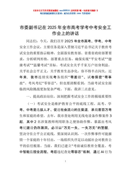 / 市委副书记在2025年全市高考学考中考安全工作会上的讲话