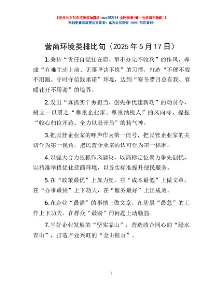 / 营商环境类排比句(2025年5月17日)
