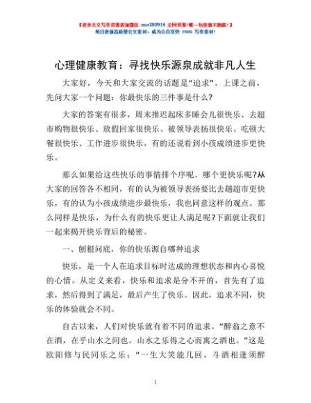 / 心理健康教育:寻找快乐源泉 成就非凡人生