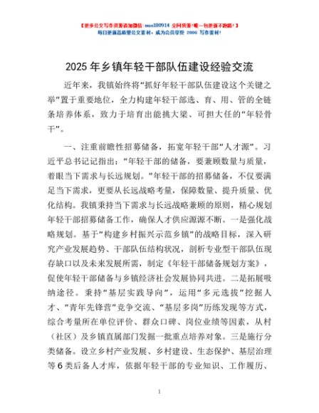 / 2025年乡镇年轻干部队伍建设经验交流