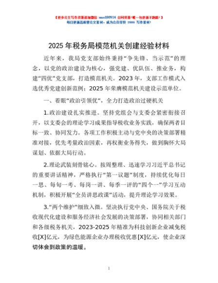 / 2025年税务局模范机关创建经验材料
