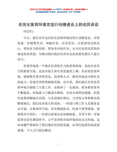 / 在优化营商环境攻坚行动推进会上的动员讲话