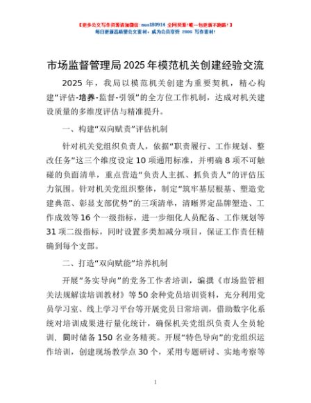 / 市场监督管理局2025年模范机关创建经验交流