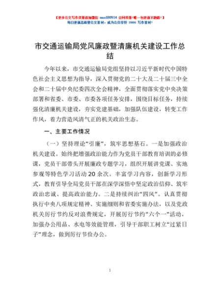 / 市交通运输局党风廉政暨清廉机关建设工作总结