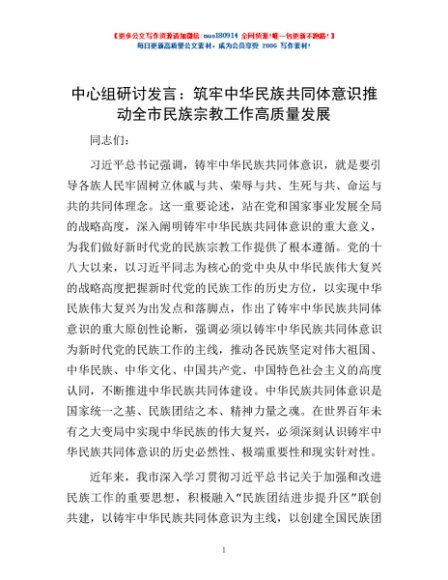 / 中心组研讨发言:筑牢中华民族共同体意识推动全市民族宗教工作高质量发展
