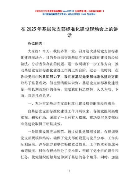 / 在2025年基层党支部标准化建设现场会上的讲话