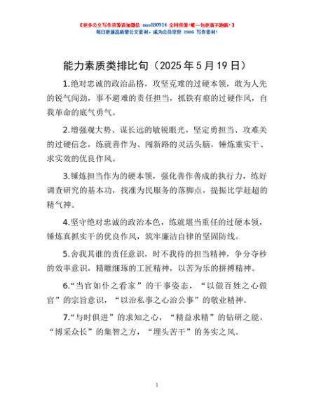 / 能力素质类排比句(2025年5月19日)