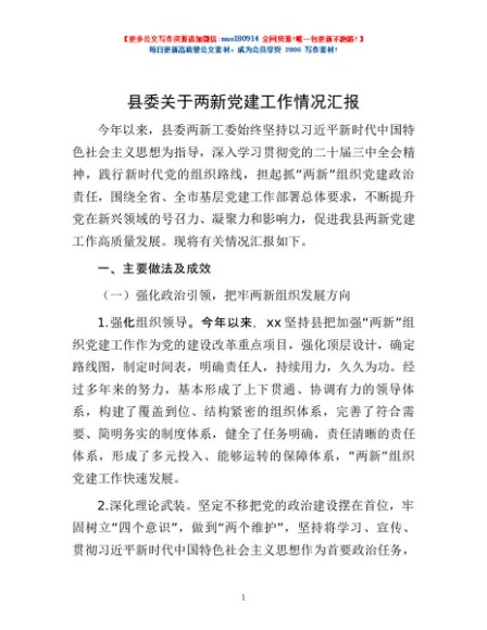 / 县委关于两新党建工作情况汇报
