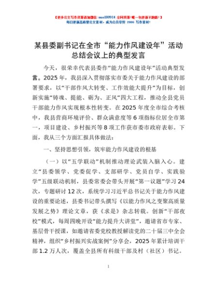 / 某县委副书记在全市“能力作风建设年”活动总结会议上的典型发言