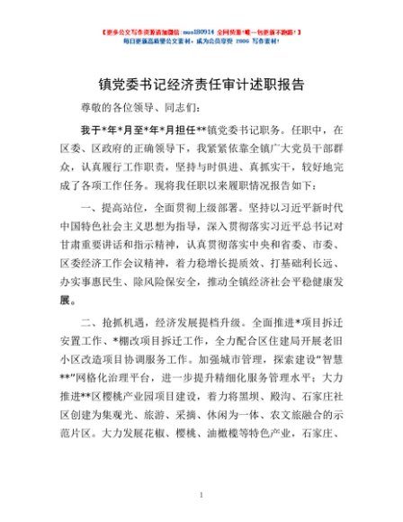 / 镇党委书记经济责任审计述职报告