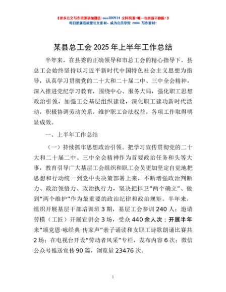 / 某县总工会2025年上半年工作总结