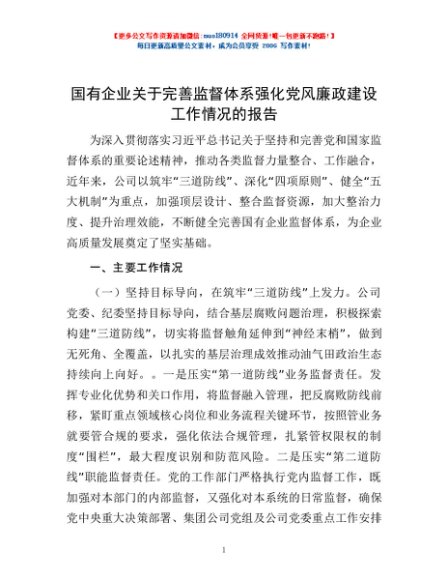 / 国有企业关于完善监督体系强化党风廉政建设工作情况的报告