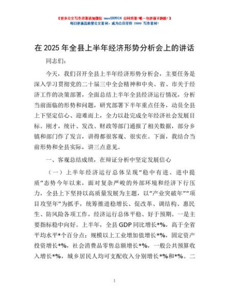 / 在2025年全县上半年经济形势分析会上的讲话